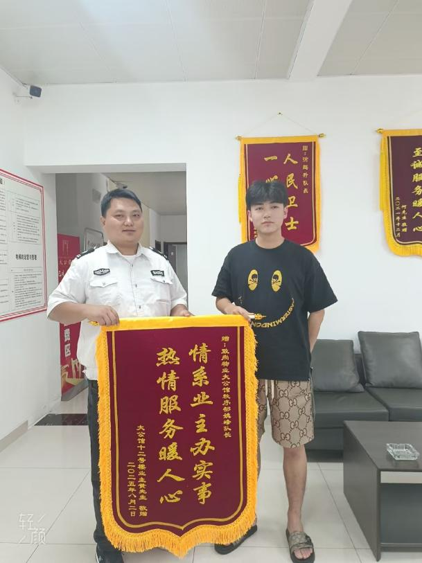 8月,大公館小區(qū)物業(yè)服務(wù)中心內(nèi)暖意融融。業(yè)主黃先生送來一面寫著“情系業(yè)主辦實事,熱情服務(wù)暖人心”的錦旗,感謝秩序部隊長姚峰幫忙找回丟失財物。業(yè)主金女士也將一面寫著“人民衛(wèi)士,一心為民”的錦旗鄭重地送到保安隊長徐鵬升手中,衷心感謝他通過監(jiān)控追蹤,成功抓獲小偷,為自己追回了被盜財物。安保團隊以實際行動詮釋著“服務(wù)業(yè)主”的宗旨,讓業(yè)主們感受到了家一般的溫暖。